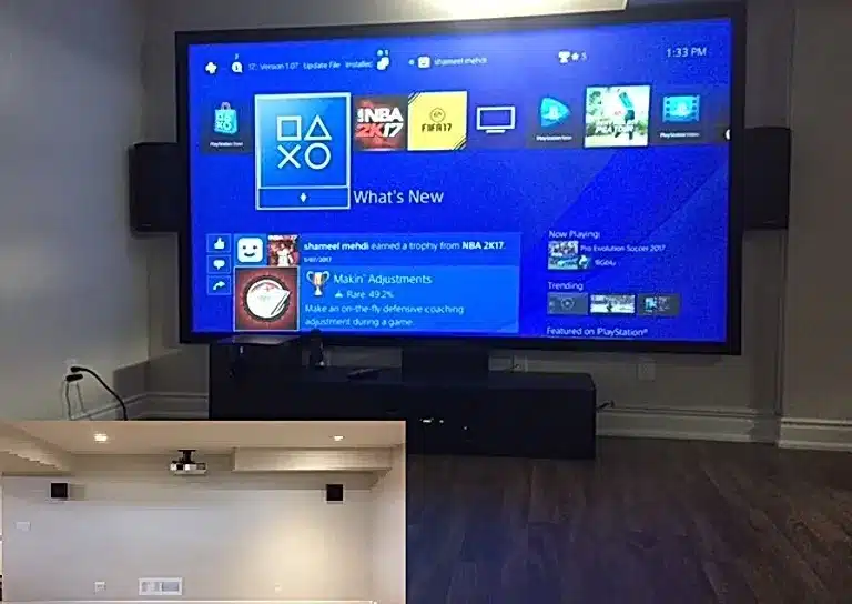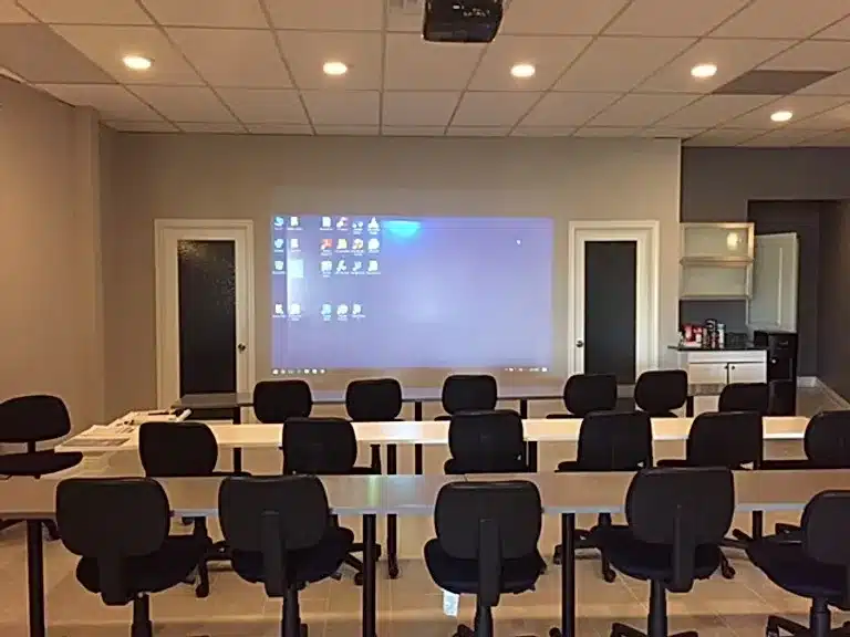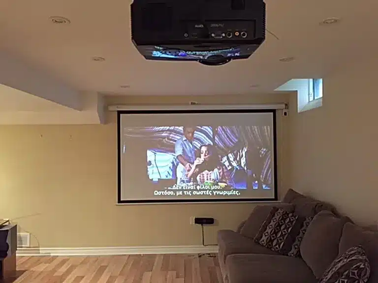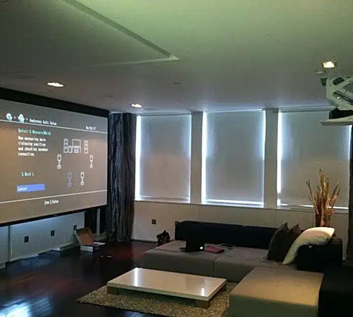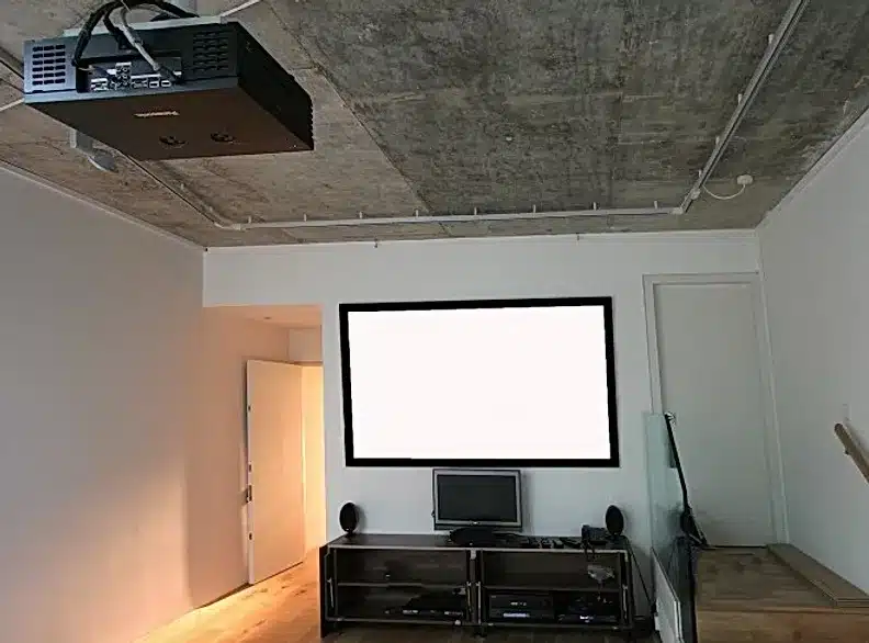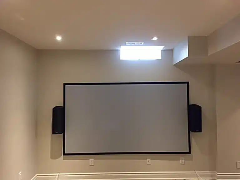 Installing projector screens of any type including fixed frames, manual pull-downs and automatic pull-downs with remotes.